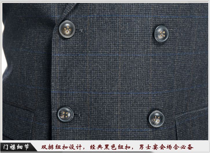經典的雙排紐扣設計,質感非常而泛光的面料,體現材質的上乘,結合修身的剪裁,強化男士